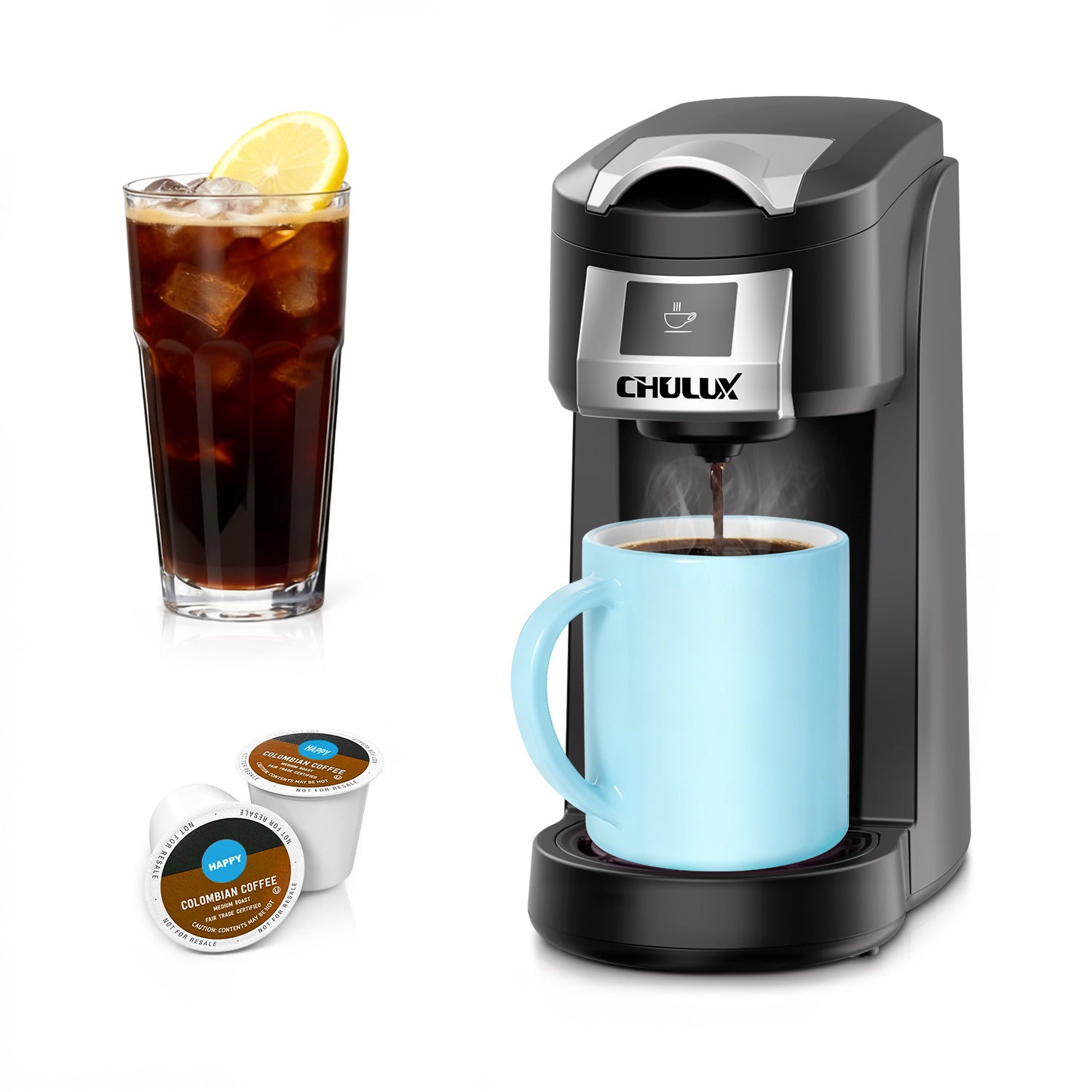 Easy, Fresh & Fast: With just one button, the CHULUX Classic Single Serve Coffee Maker for K Cup makes brewing a breeze. Simply add fresh water, insert your favorite K cup coffee or tea capsule, and press start. In just a few minutes, you'll have a steaming hot cup of fresh coffee—perfect for busy mornings or a mid-day energy boost.
