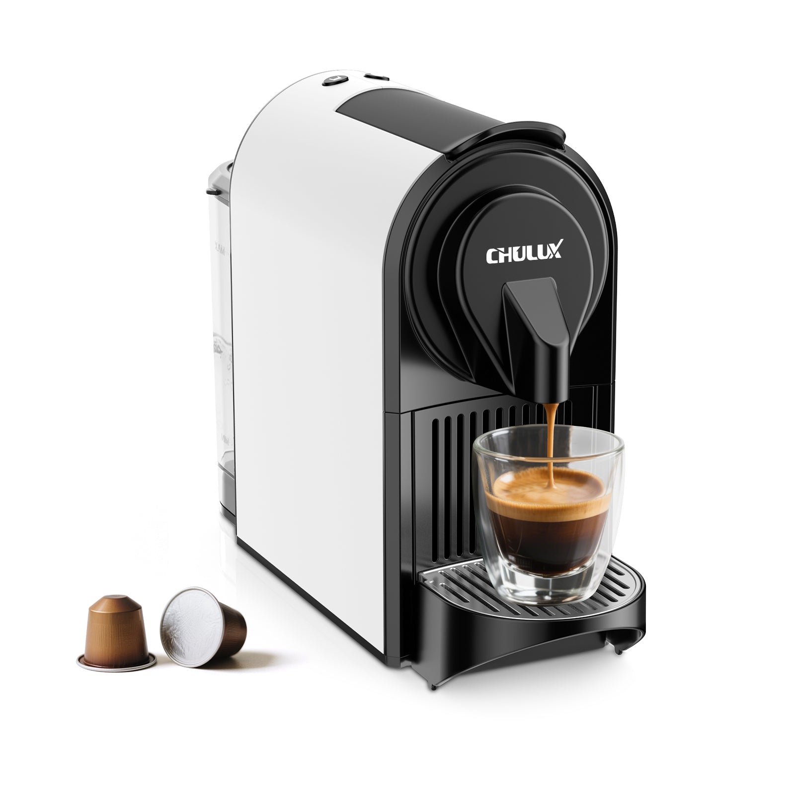 - 【2 Cup Size for Option】The CHULUX expressions machine is compatible with Nespresso capsules and other brands capsule for home made coffee. Then choose the Espresso or Lungo button for better taste depending on different capsules and personal preference.