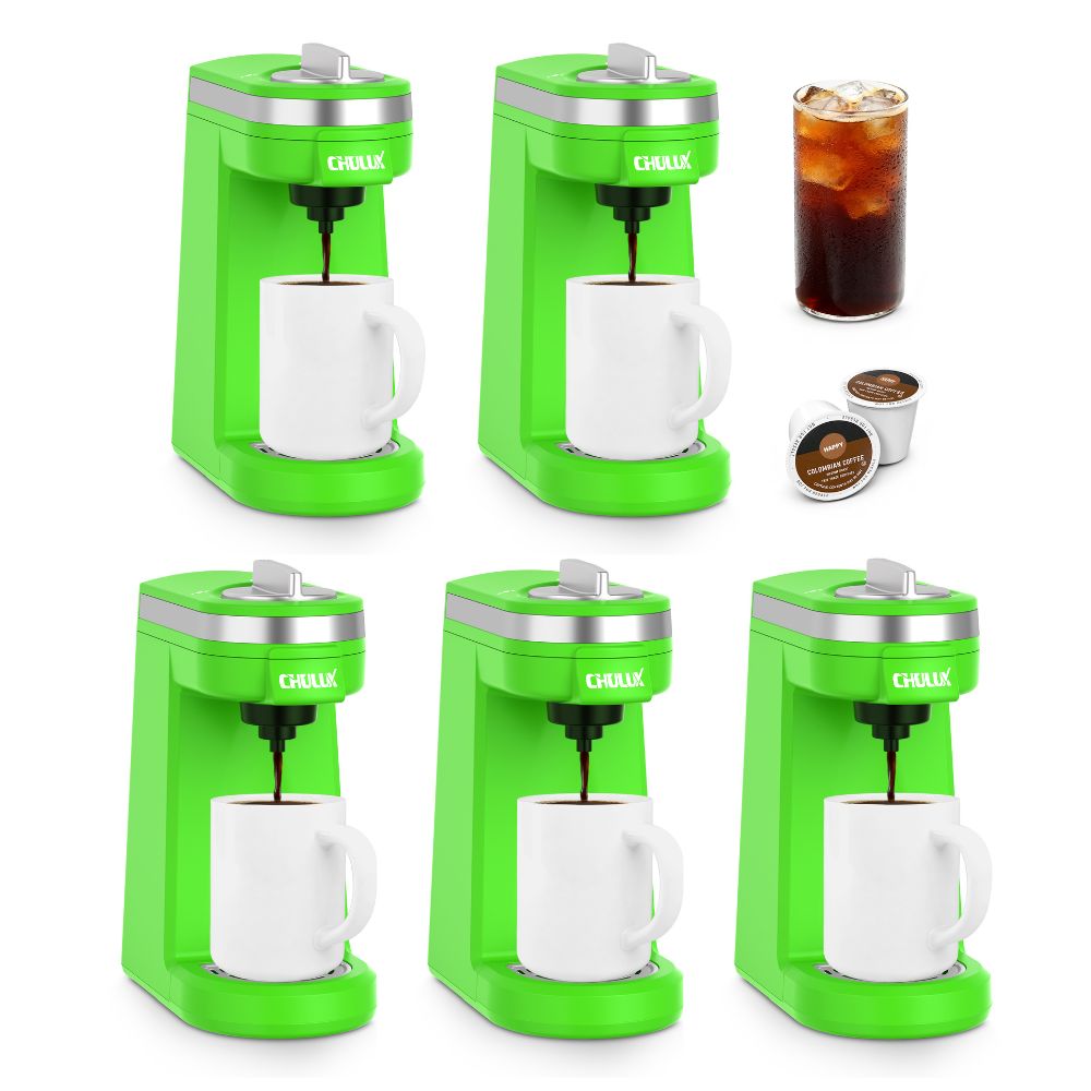 5pcs CHULUX Mini Single Serve Travel Coffee Maker for K Cup, QF-CM801, Green