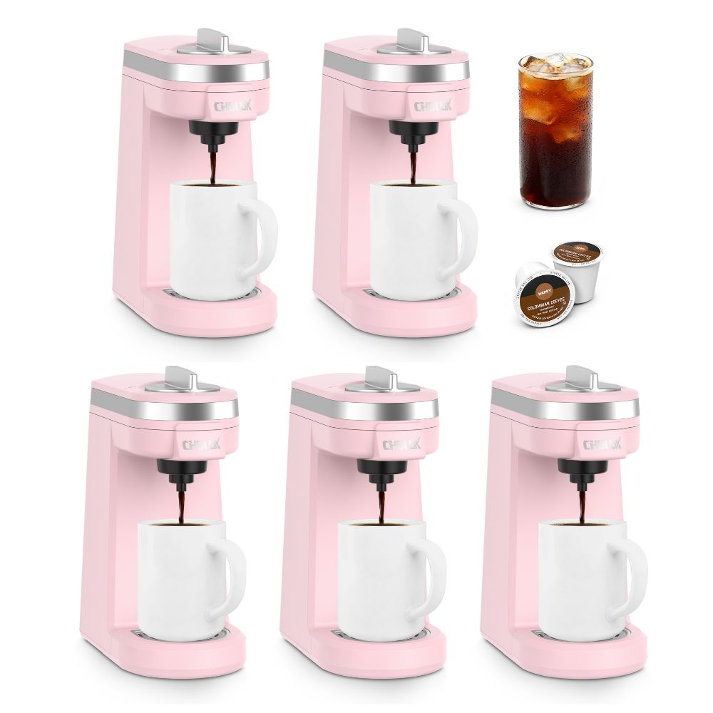 5pcs CHULUX Mini Single Serve Travel Coffee Maker for K Cup, QF-CM801, Pink