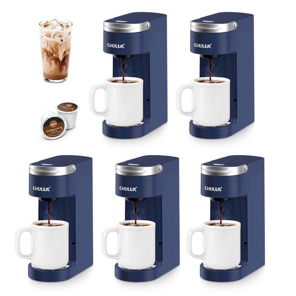 5pcs CHULUX Slim Single Serve Coffee Maker for K Cup, QF-CM807, Navy Blue