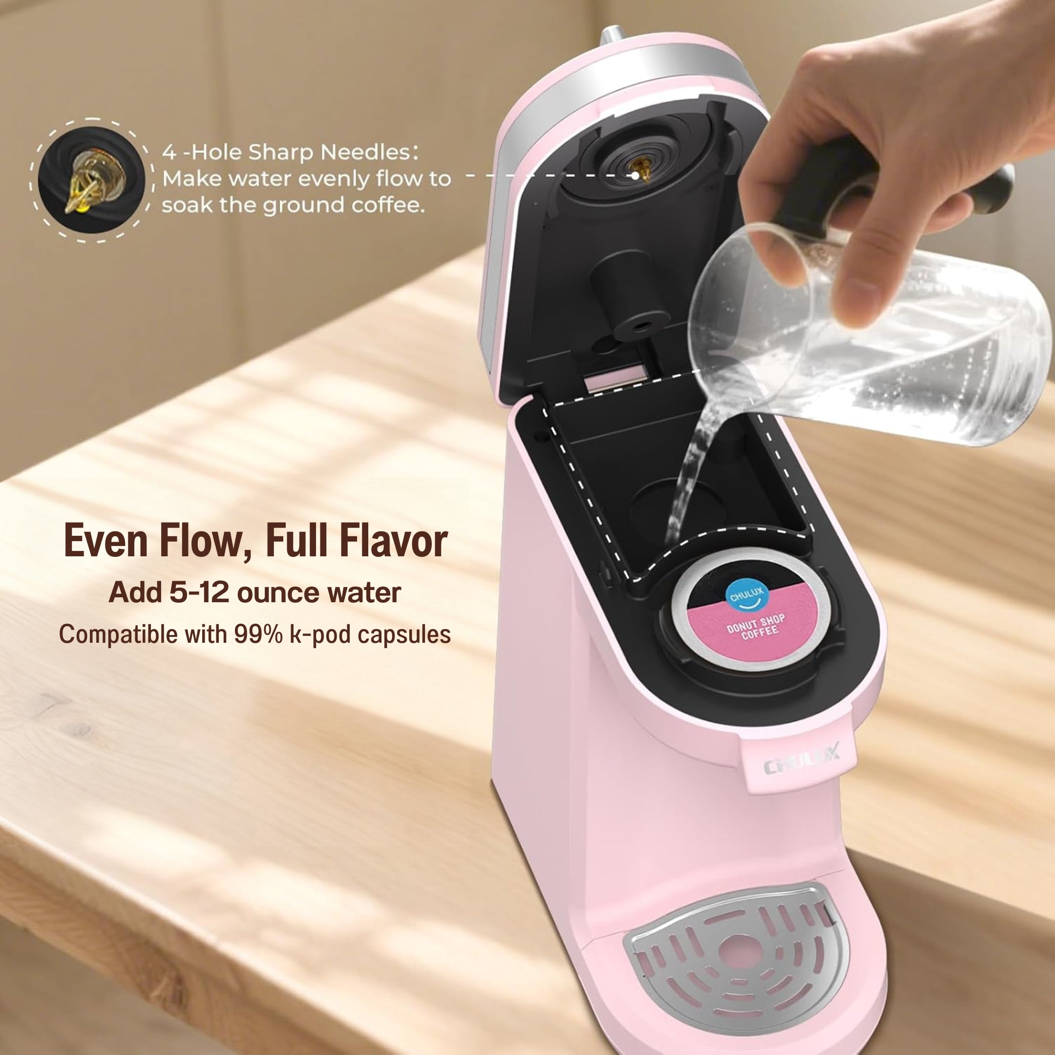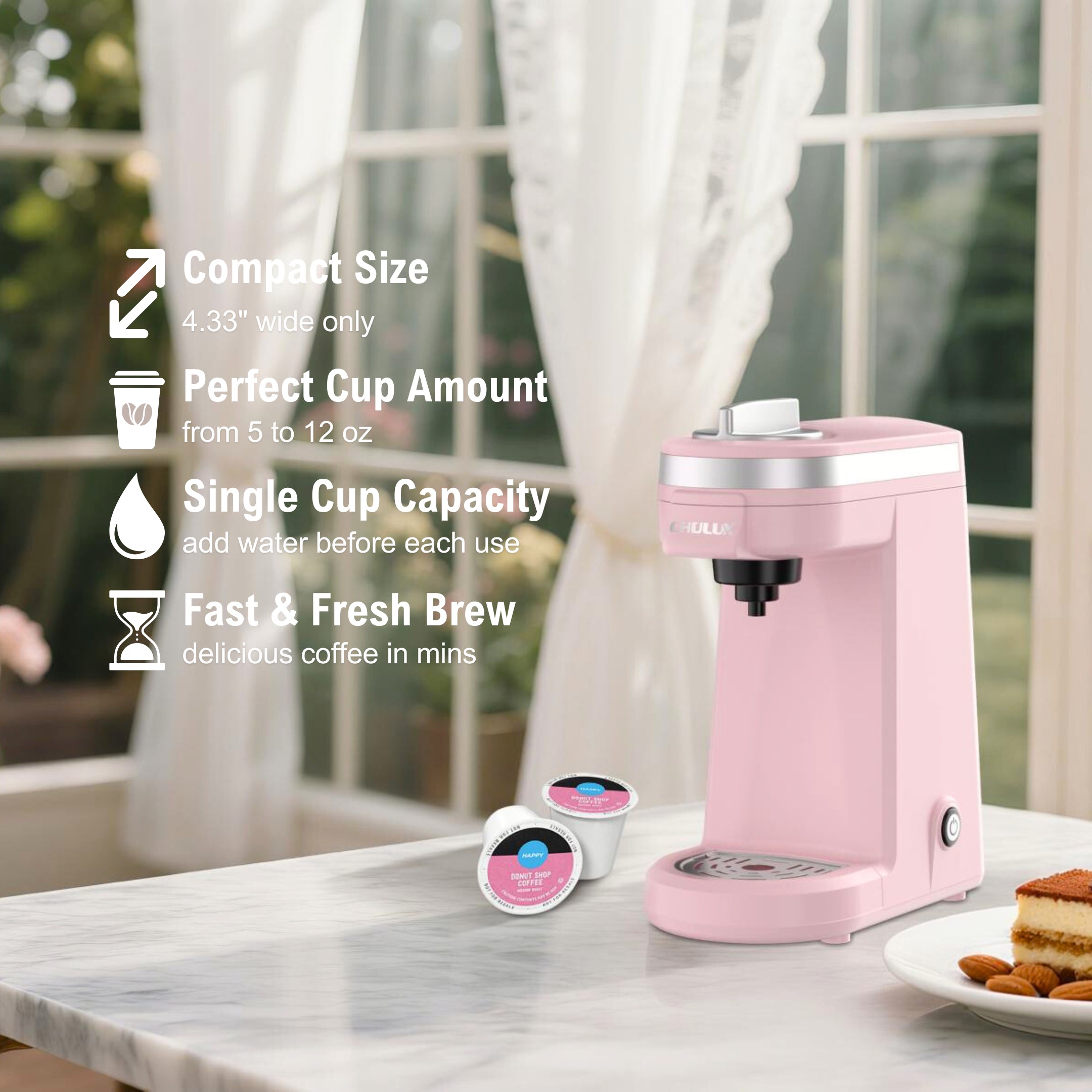 CHULUX Mini Single Serve Travel Coffee Maker for K Cup, QF-CM801, Pink
