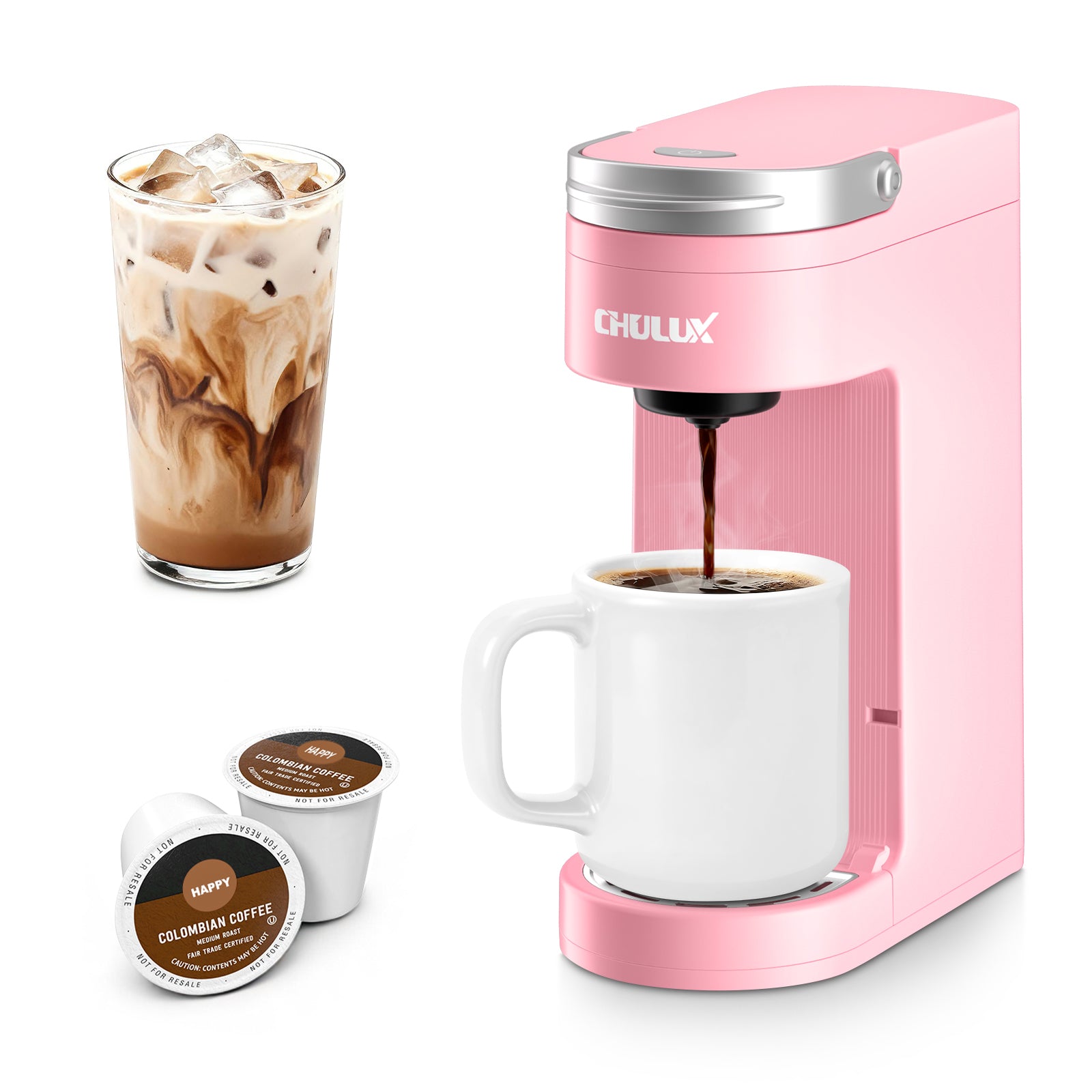 CHULUX Slim Single Serve Coffee Maker for K Cup, QF-CM807, Salmon Pink