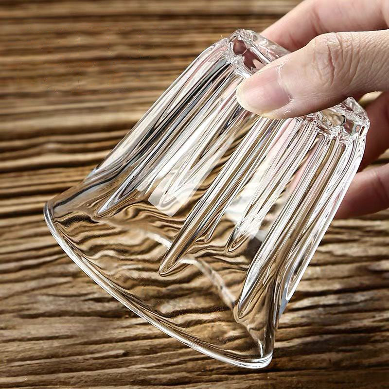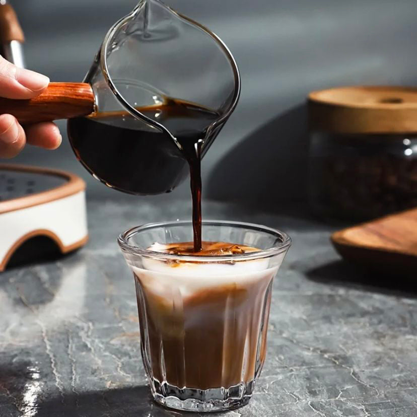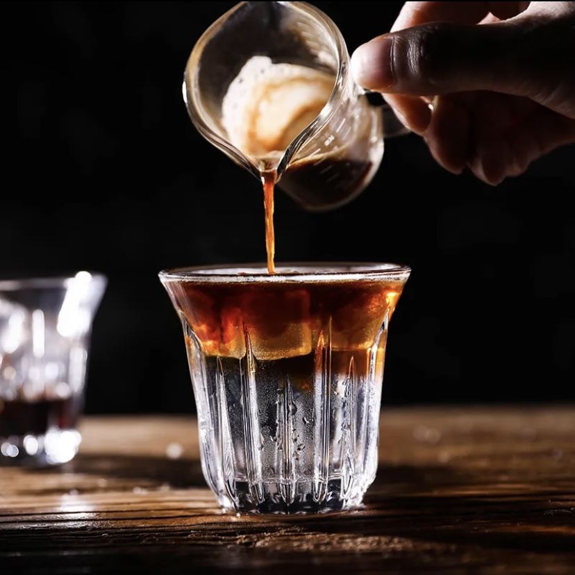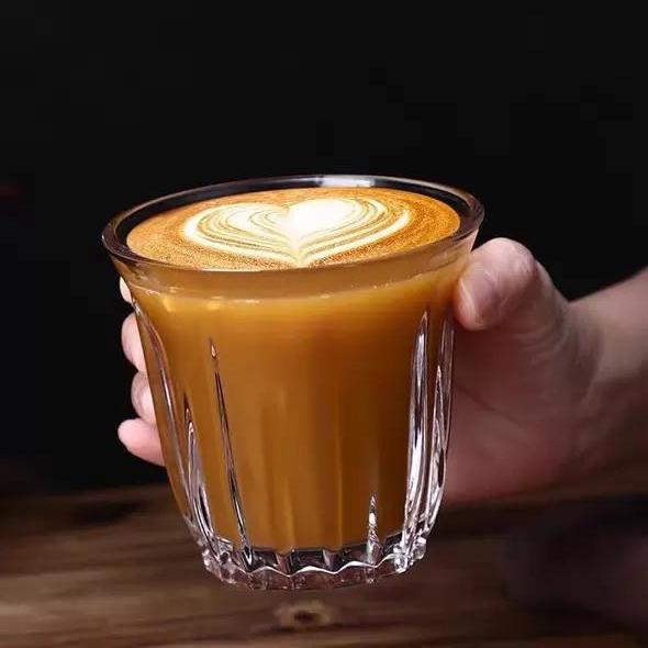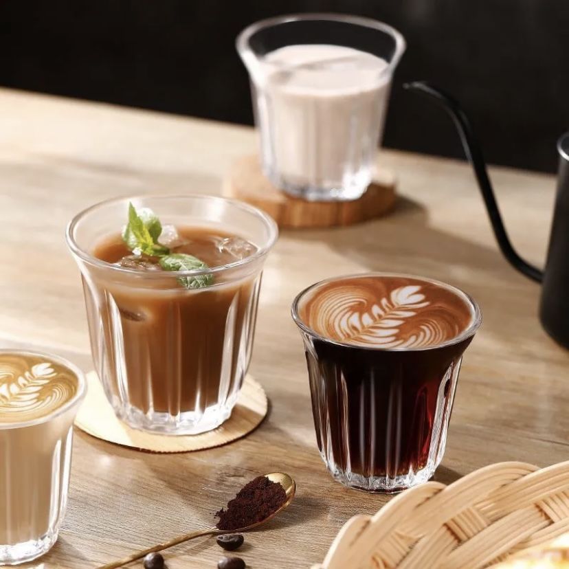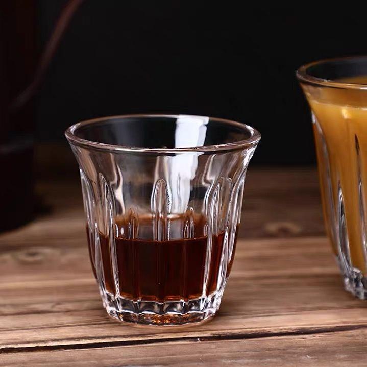 CHULUX 2pcs Coffee Latte Iced Americano Ribbed Glass Cup