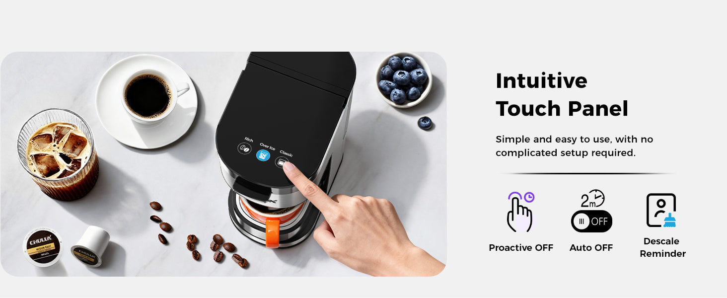 The CHULUX Slim-Pro Single Serve Coffee Maker for K Cup offers three personalized brew options to satisfy every taste: