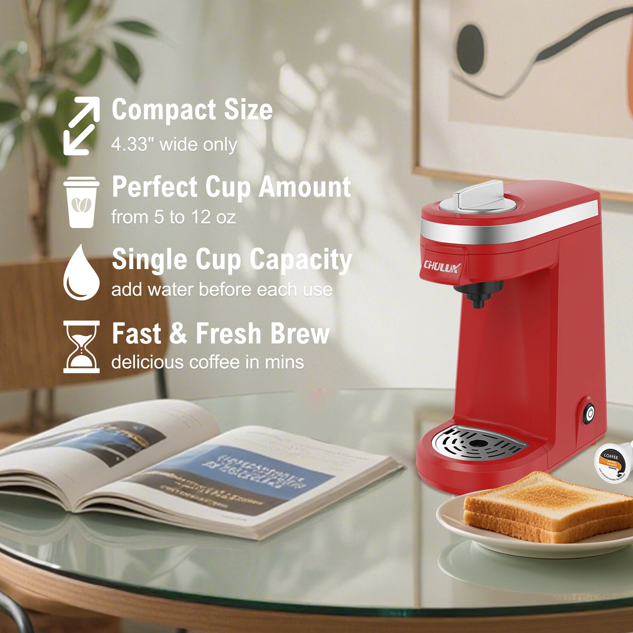 CHULUX Mini Single Serve Travel Coffee Maker for K Cup, QF-CM801, Red
