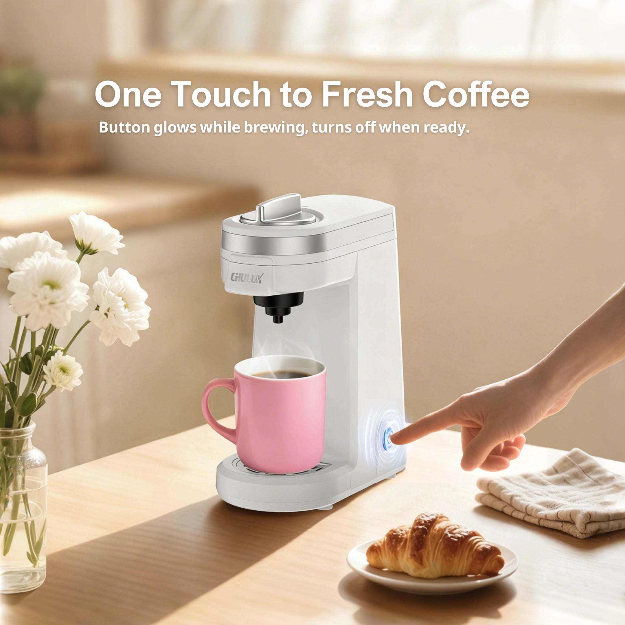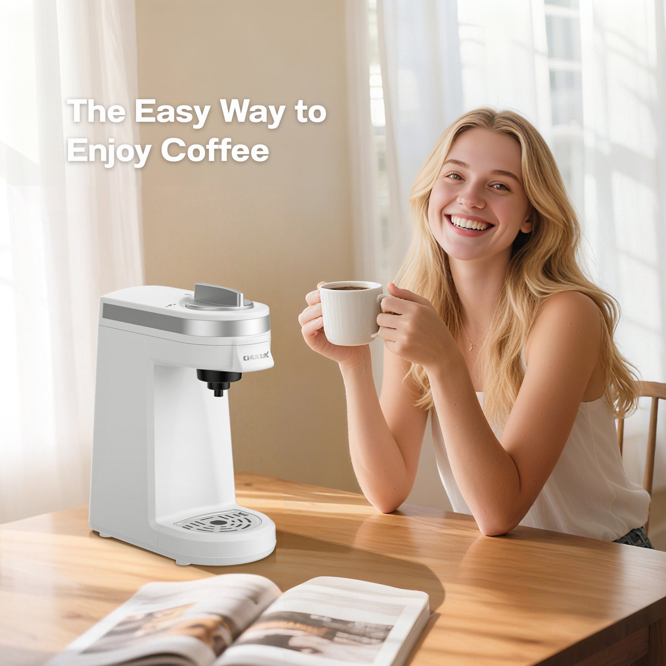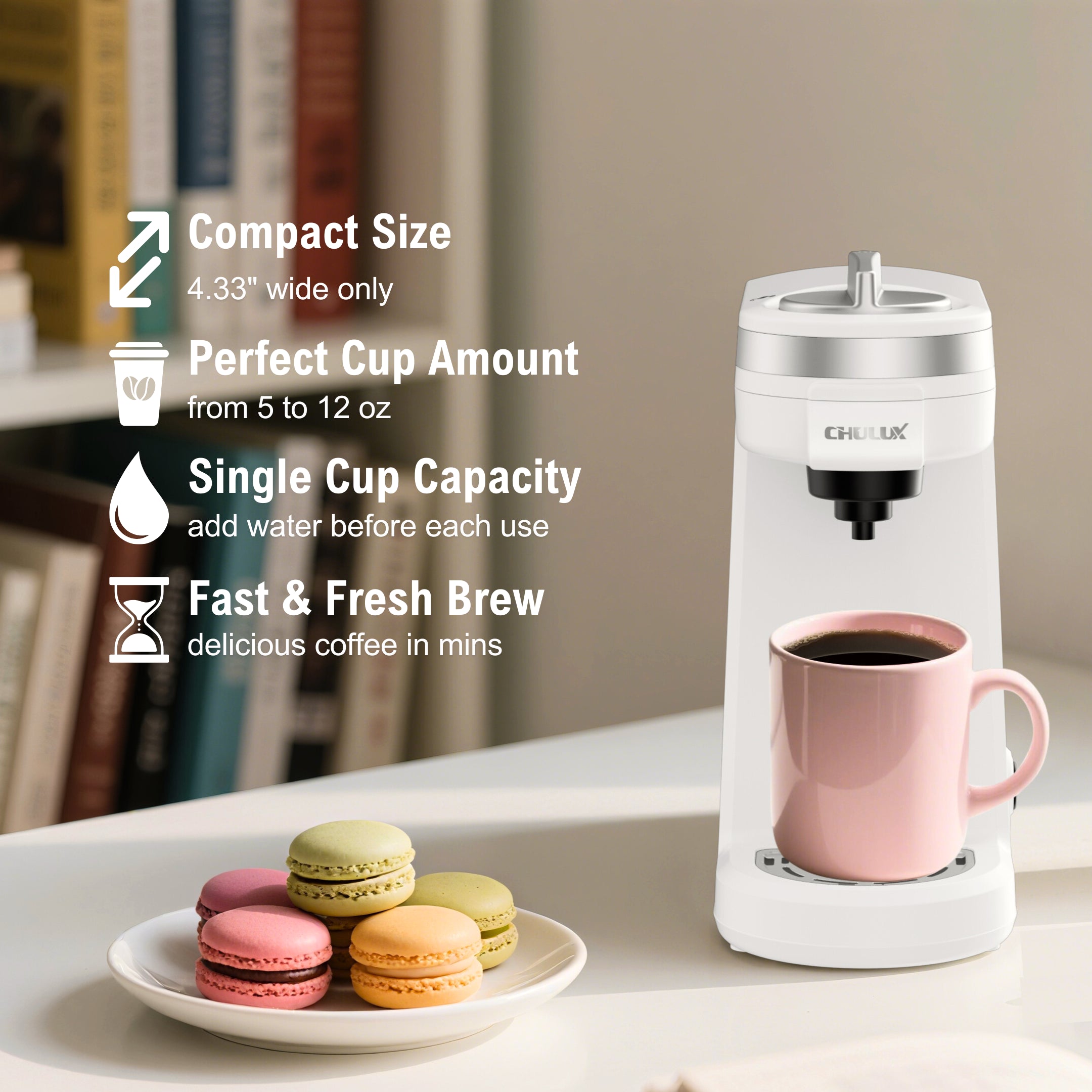 CHULUX Mini Single Serve Travel Coffee Maker for K Cup, QF-CM801, White