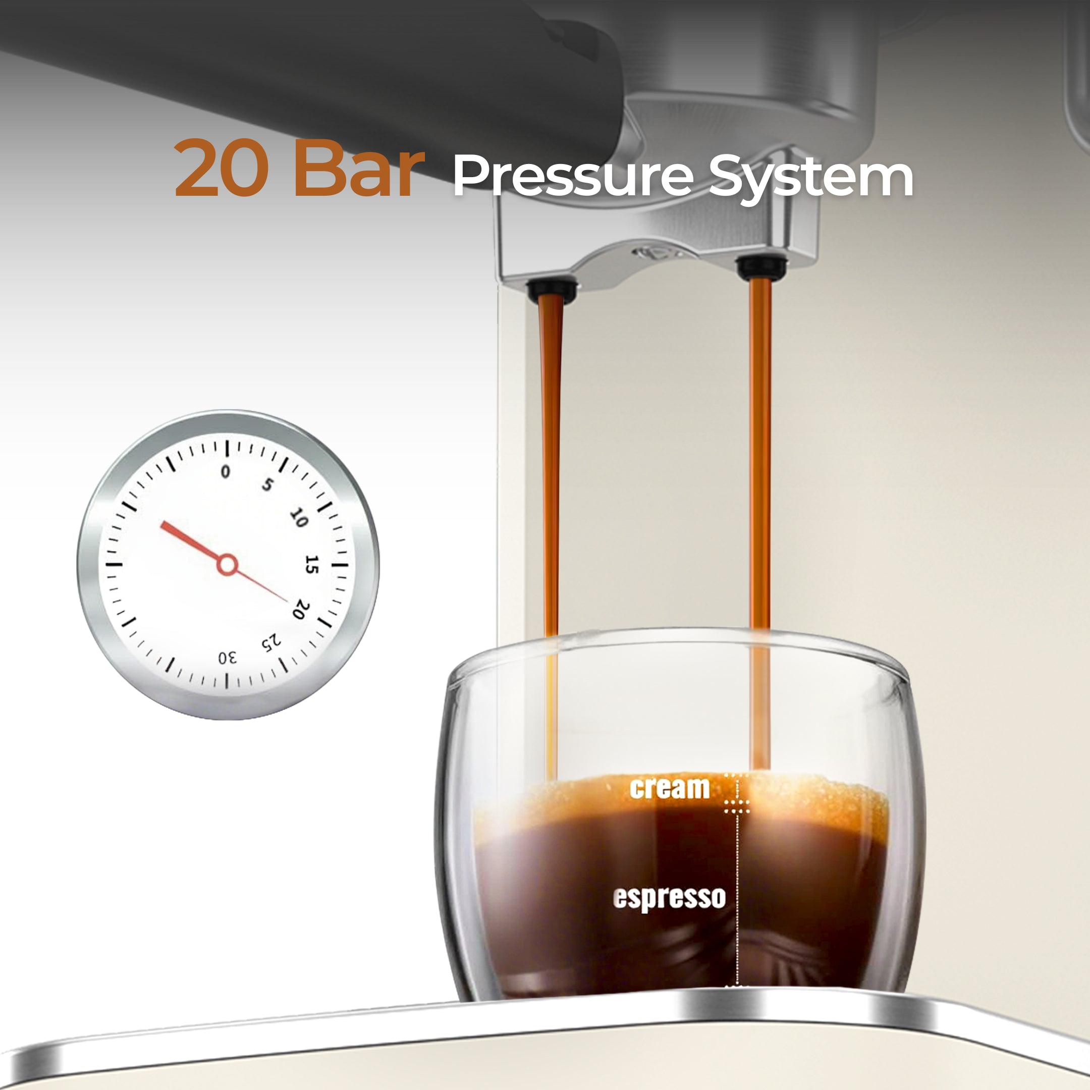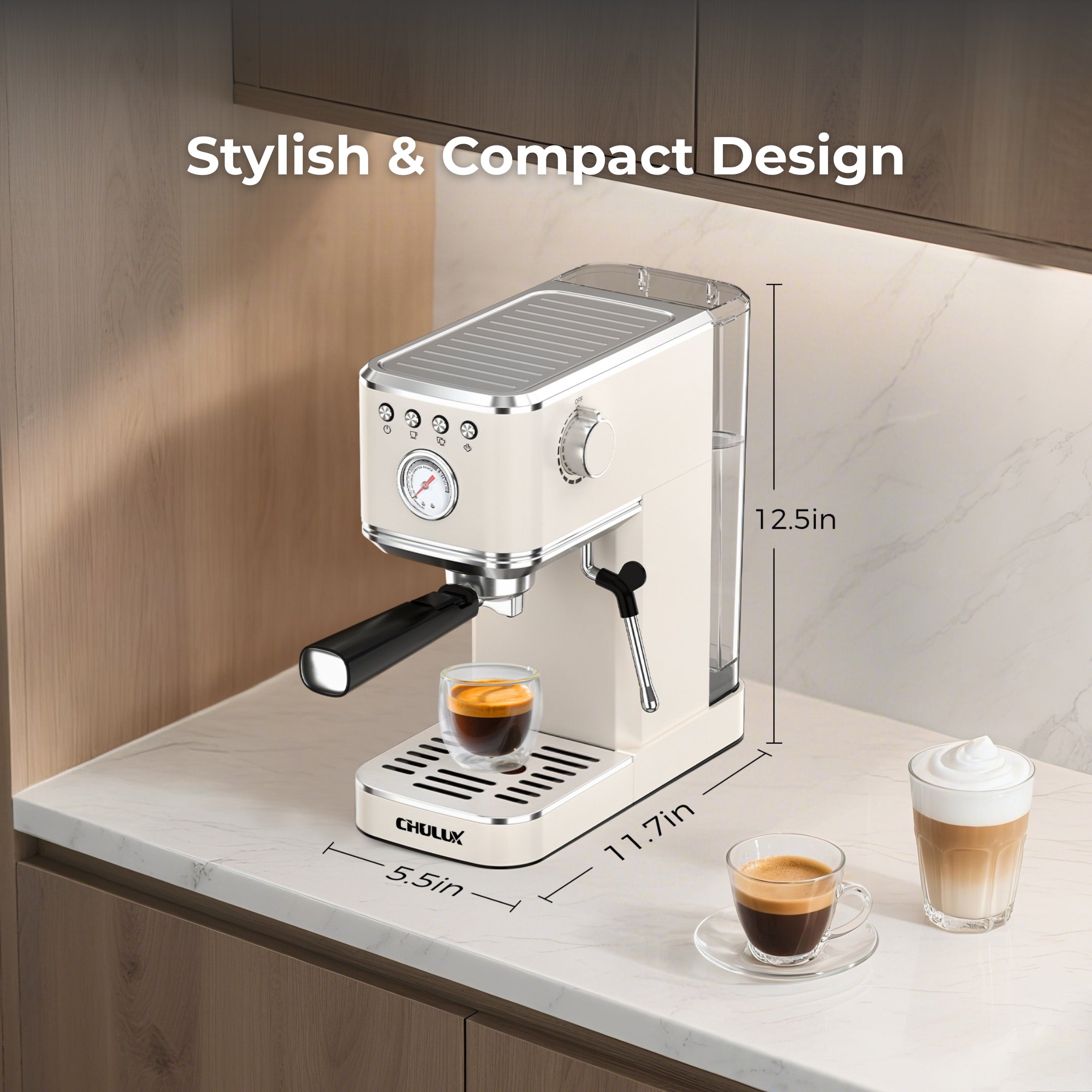 • Professional Pump: The CHULUX Semi Auto Espresso Machine comes equipped with a 20-bar original Italian pump, ensuring easy extraction of strong-flavored espresso with rich crema.