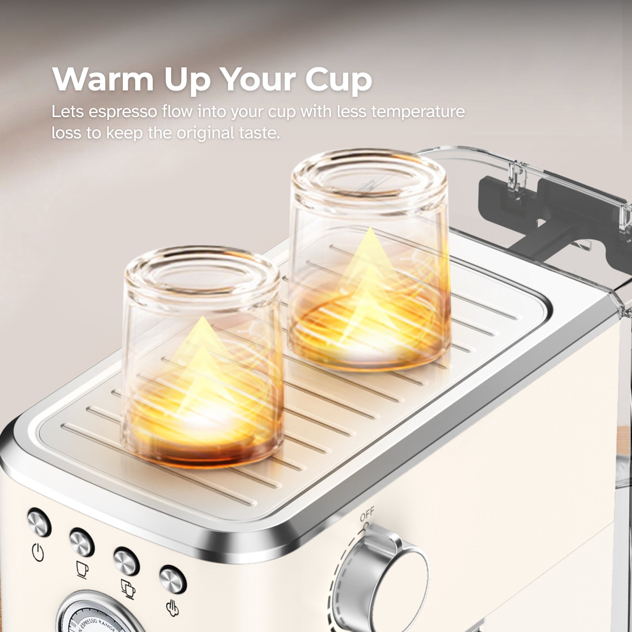 • Fast Heating: With a powerful 1350-watt boiler, it preheats in just 30 seconds, allowing you to brew a delicious espresso in only 1–3 minutes.