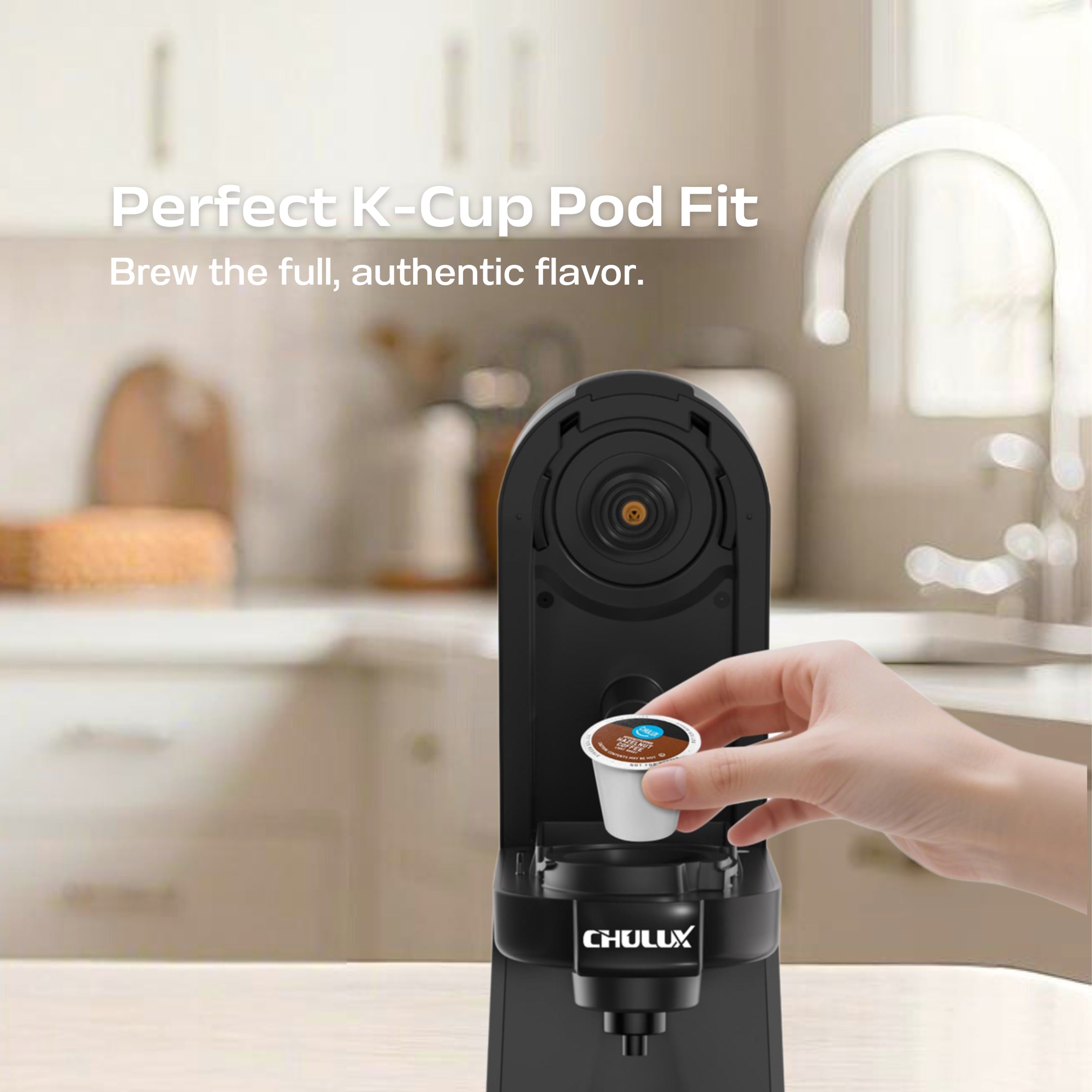 Diseñada para viajes y espacios reducidos, esta mini cafetera es perfecta para viajes de negocios, oficinas, residencias universitarias, hoteles, cocinas y autocaravanas. La mini cafetera de viaje CHULUX de una sola porción para cápsulas K-Cup funciona a 120 V y ofrece un rendimiento óptimo a altitudes inferiores a 1824 metros. Su diseño delgado facilita su transporte y almacenamiento en cualquier lugar.