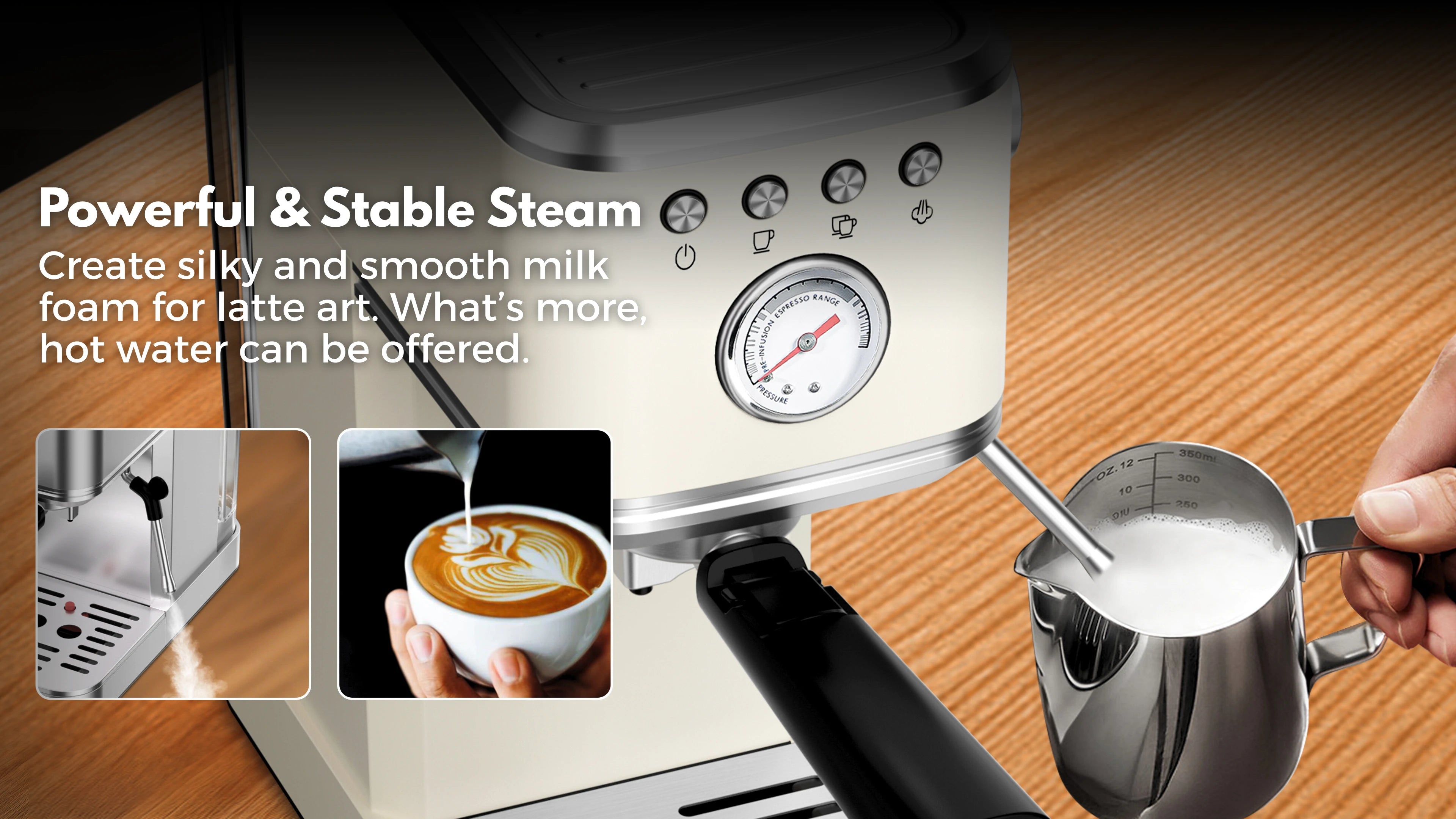 • Powerful Steam: The steam wand of the CHULUX Semi Auto Espresso Machine creates rich, creamy microfoam—perfect for crafting lattes, cappuccinos, and other espresso-based drinks.