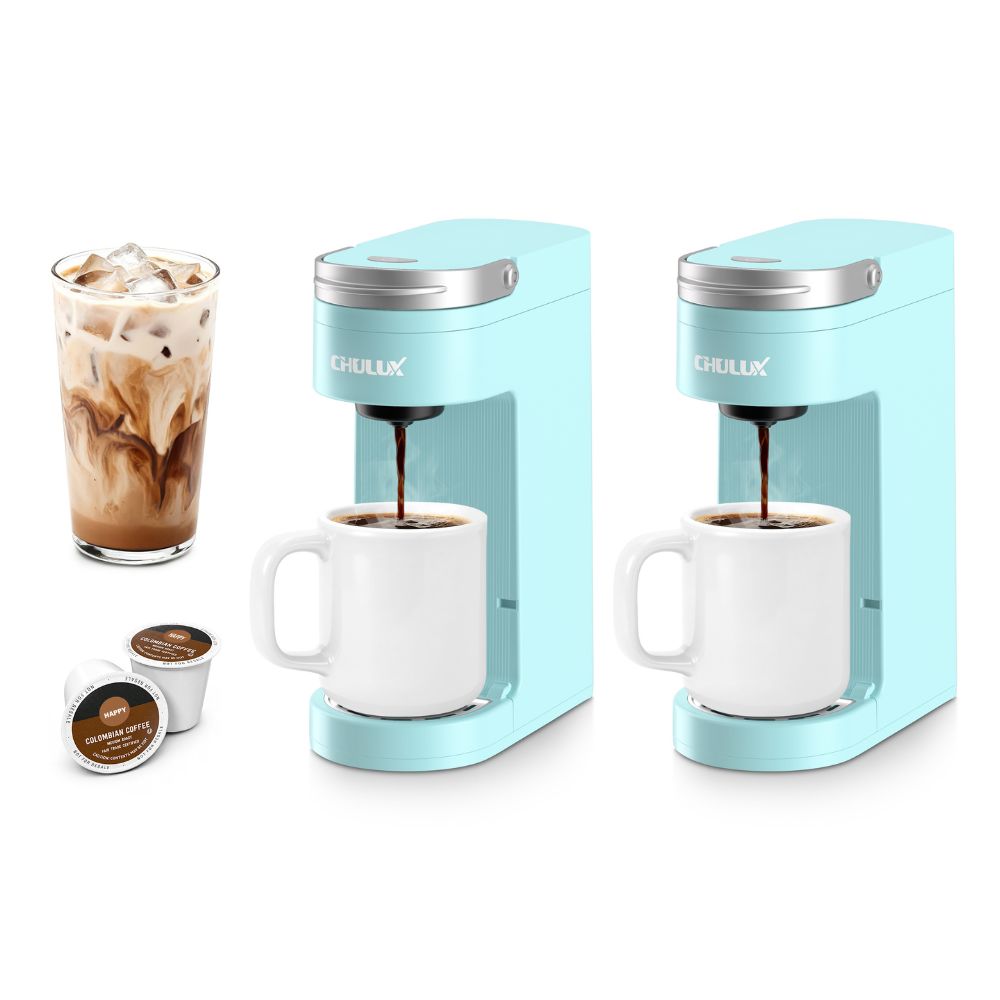 Cafetera CHULUX Slim de una sola porción para K-Cup, QF-CM807, color aguamarina, 2 unidades