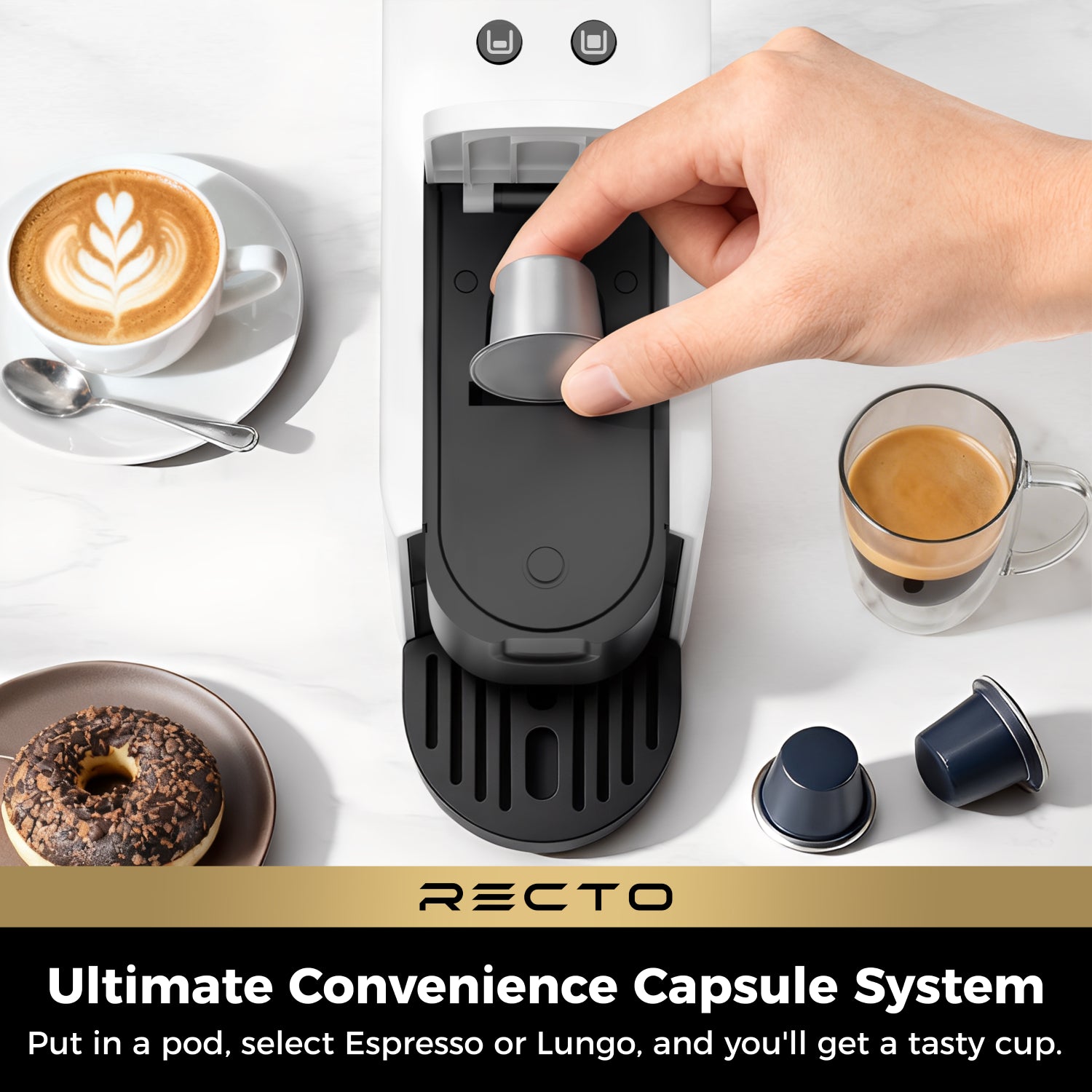 • Superior Performance: Despite its compact size, this coffee machine packs a powerful punch; The built-in 20-bar Italian pump enables the ultimate convenience capsule system to deliver peak performance, effortlessly extracting full-flavored espresso with a rich, velvety crema