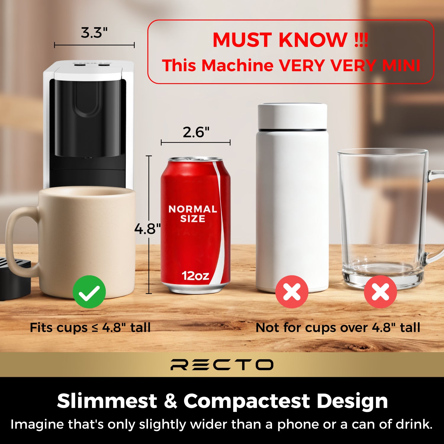 • Extra Small Machine: At just 3.3" wide, barely wider than a typical 3" phone; This espresso maker takes up next to no counter space; The internal structure is expertly engineered for maximum space efficiency, with a solid 5-lb build that feels premium