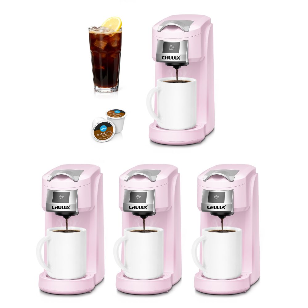 Cafetera clásica CHULUX de una sola porción (4 unidades) para K-Cup, QF-CM802, color rosa