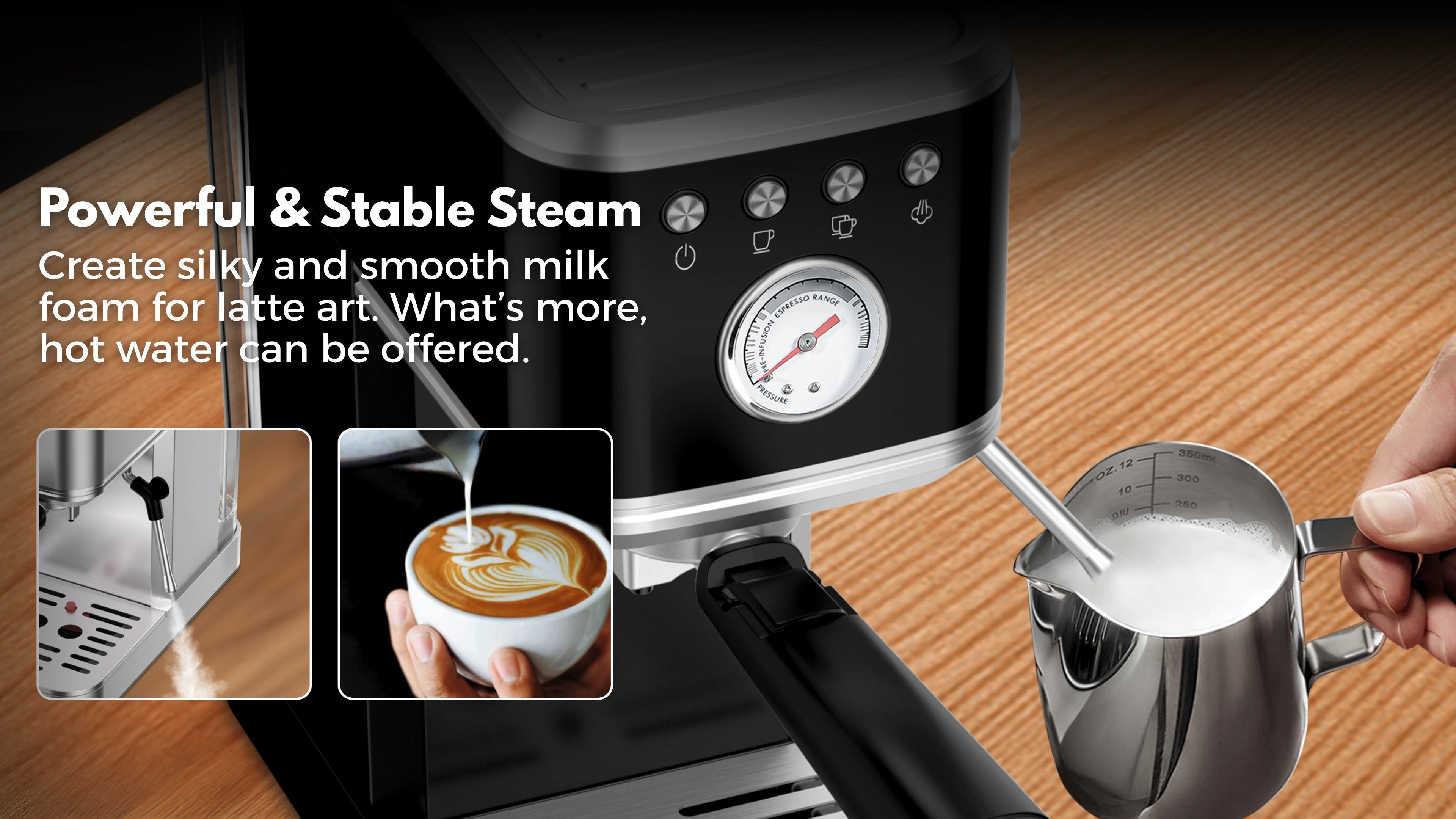 - Powerful Steam: The steam wand of the CHULUX Semi Auto Espresso Machine creates rich, creamy microfoam—perfect for crafting lattes, cappuccinos, and other espresso-based drinks.