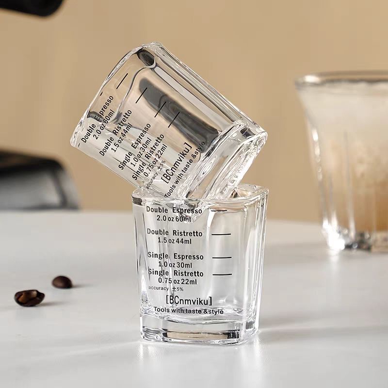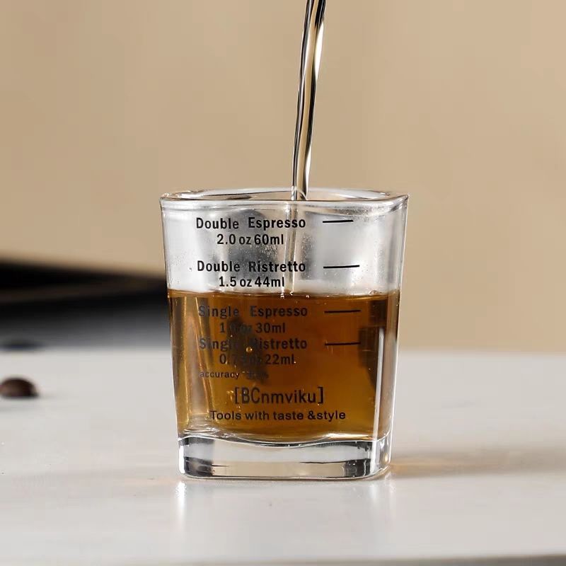 CHULUX 60ml / 2.03 oz Thick Espresso Shot Square Glass with Dual Measurements