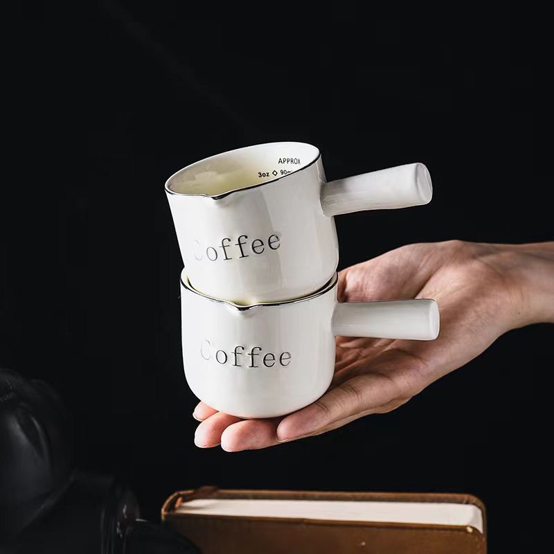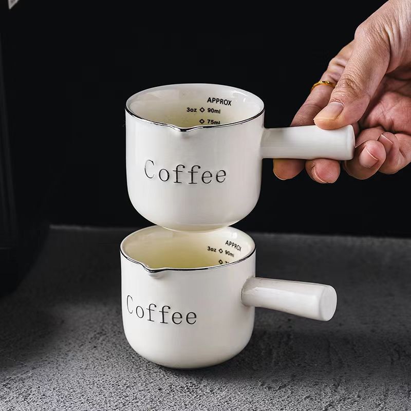 CHULUX 90ml / 3 oz Single Spout Ceramic Espresso Measuring Cup(2pcs)