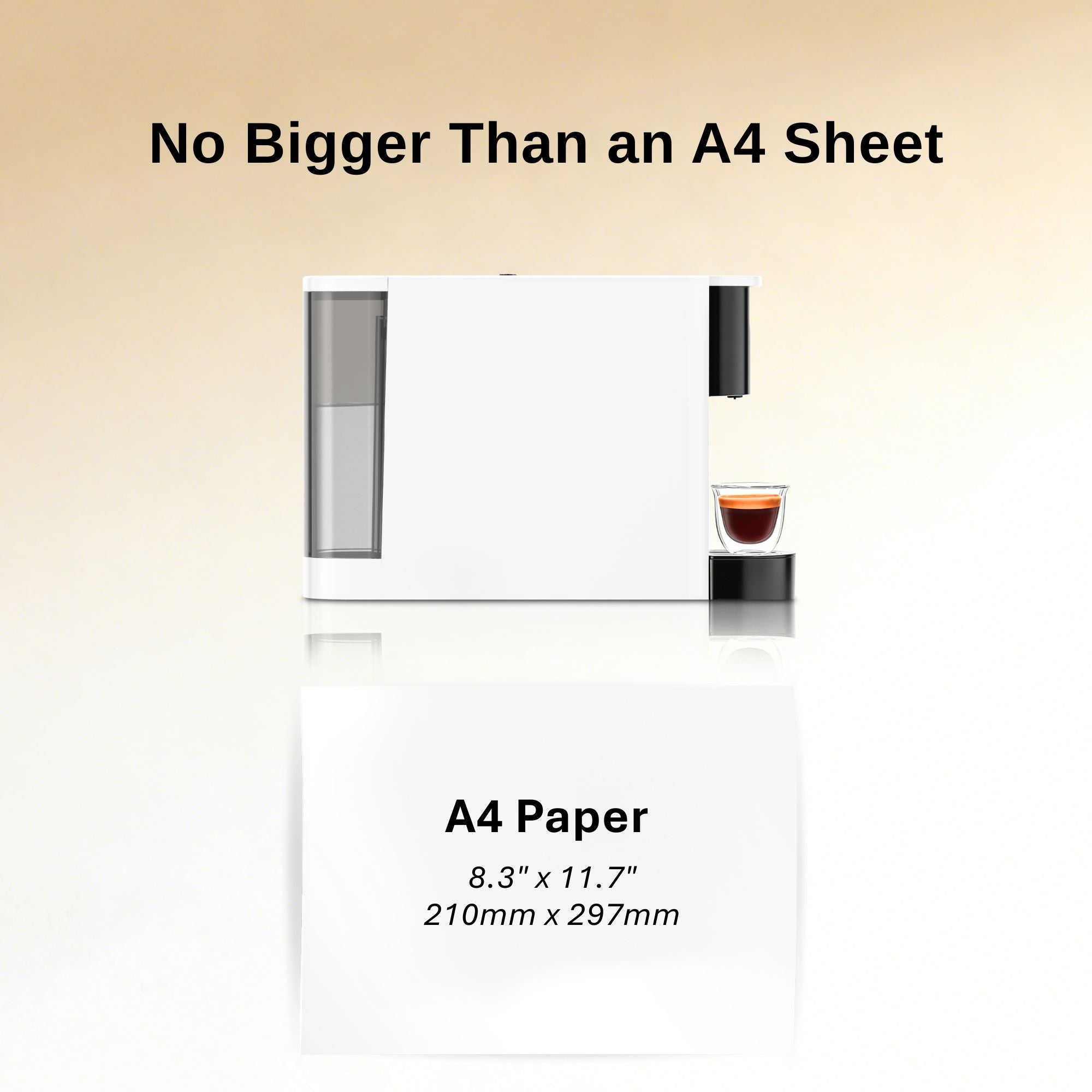 - Extra Small Machine: At just 3.3" wide, barely wider than a typical 3" phone; This espresso maker takes up next to no counter space; The internal structure is expertly engineered for maximum space efficiency, with a solid 5-lb build that feels premium