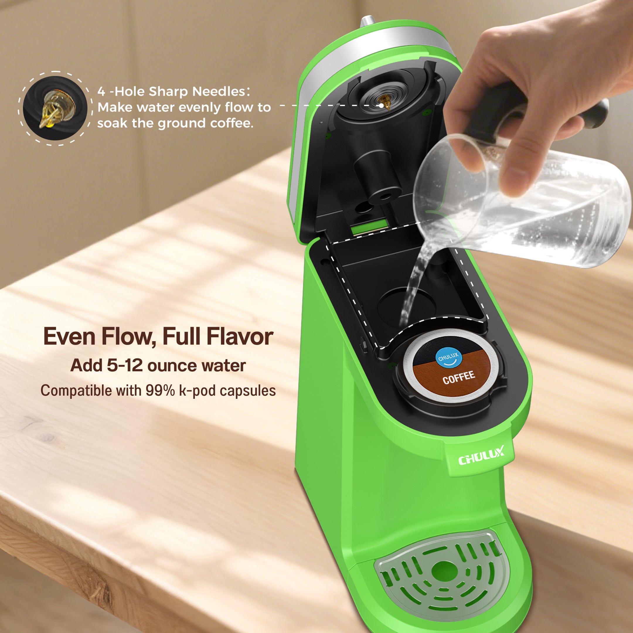 Cafetera de viaje CHULUX Mini para cápsulas K-Cup, QF-CM801, Verde