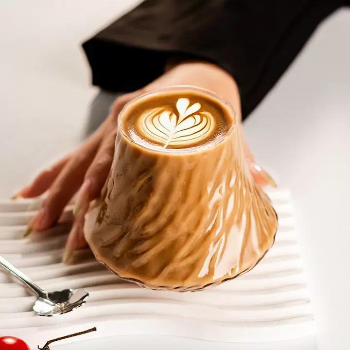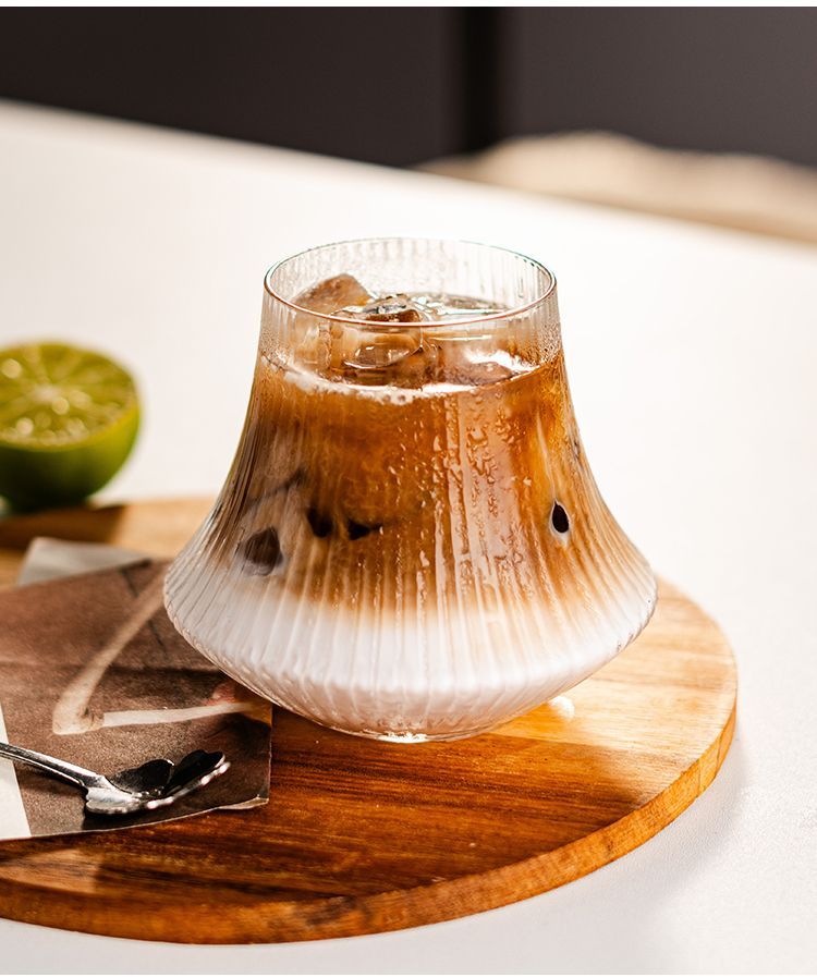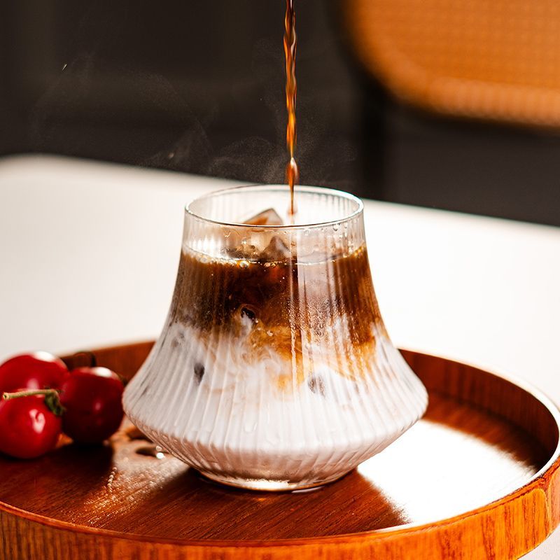 CHULUX 320 ml / 10.8 oz Coffee Latte Iced Americano Ribbed Tempered Glass Cup