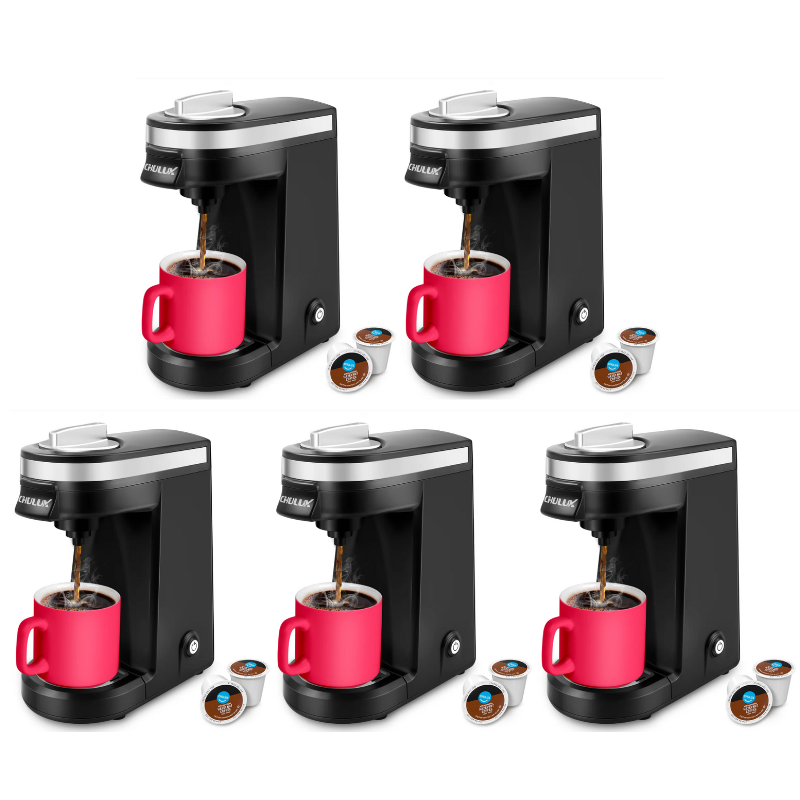 5pcs CHULUX Mini Single Serve Travel Coffee Maker for K Cup, QF-CM801, Black
