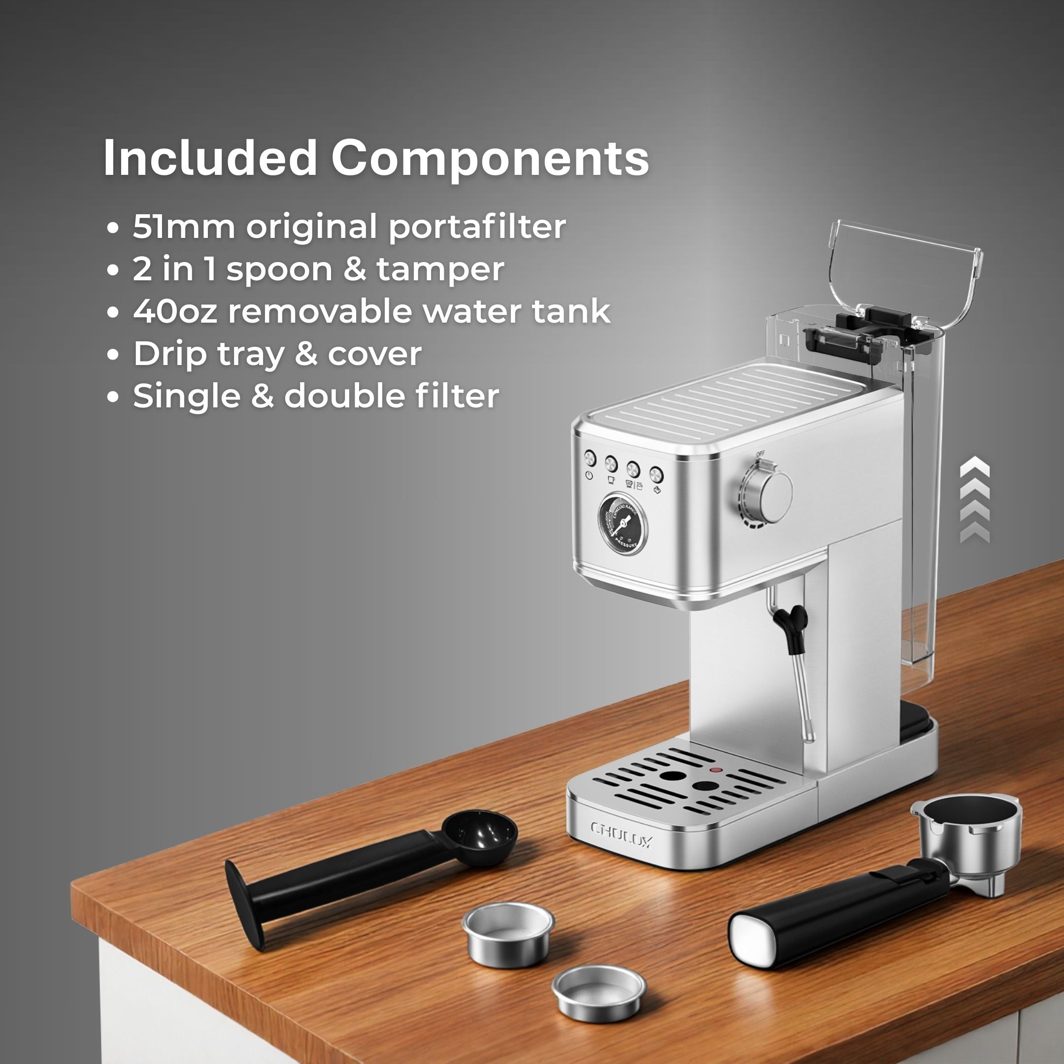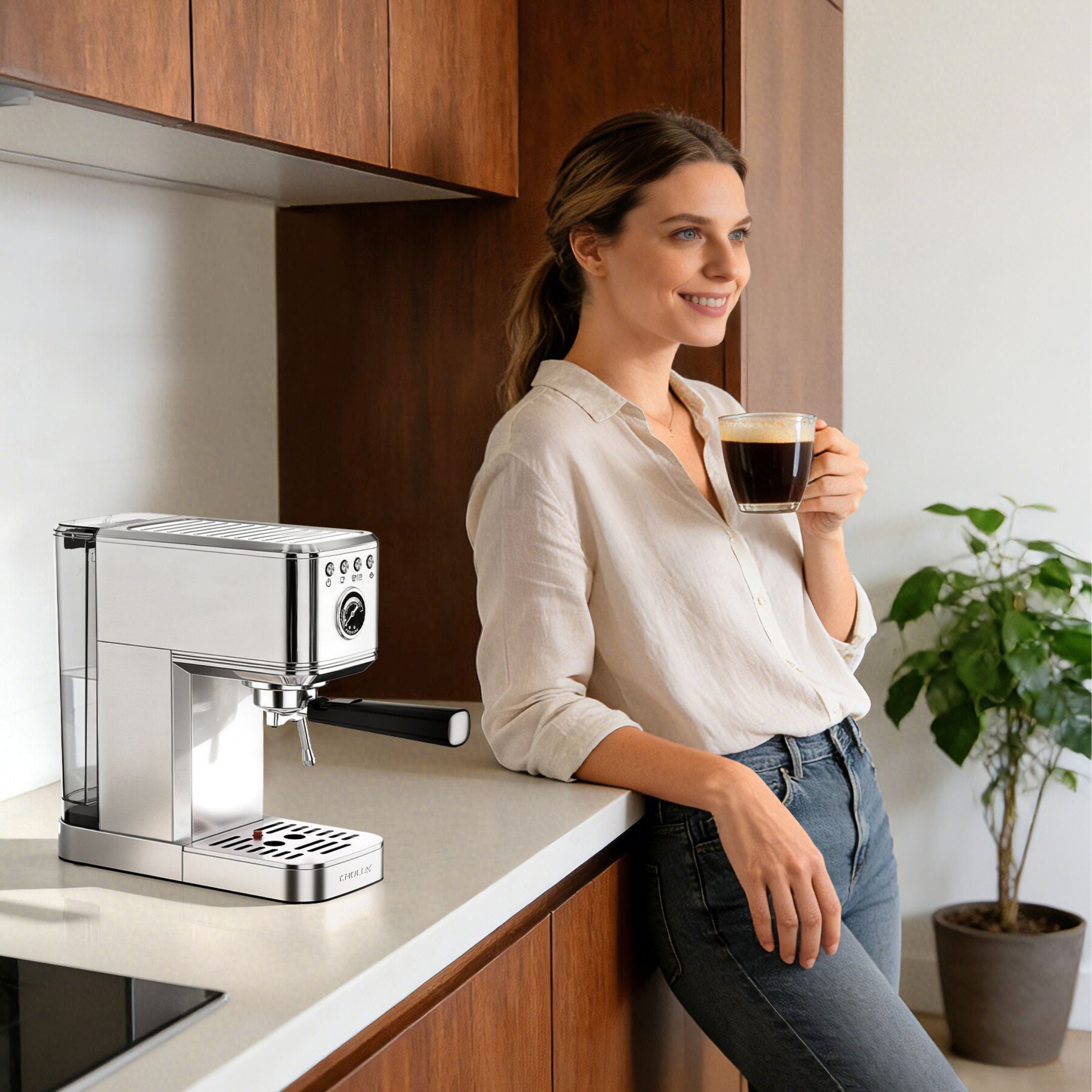 CHULUX Semi Auto Espresso Machine, EM-C5110 Plus, Silver