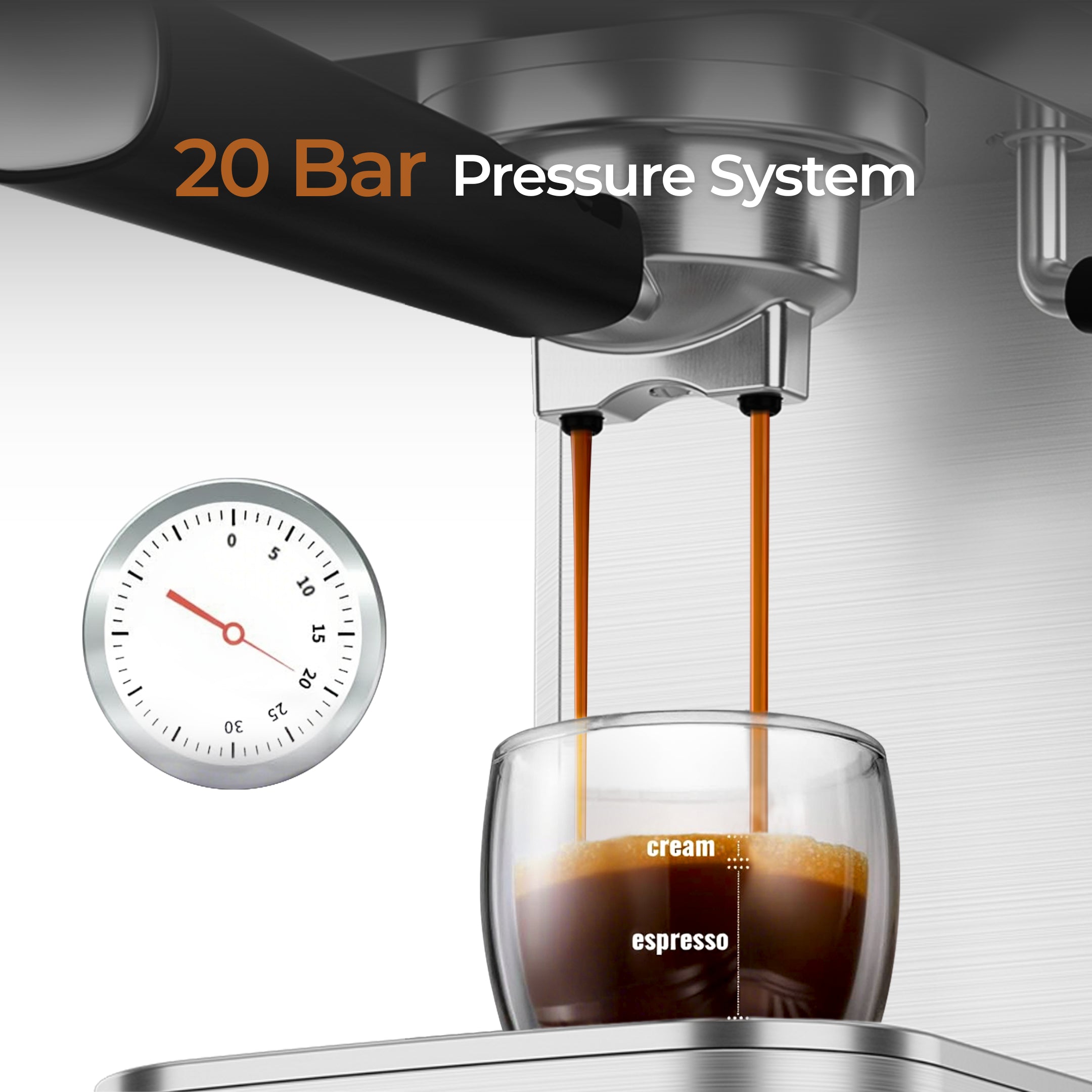- Professional Pump: The CHULUX Semi Auto Espresso Machine comes equipped with a 20-bar original Italian pump, ensuring easy extraction of strong-flavored espresso with rich crema.